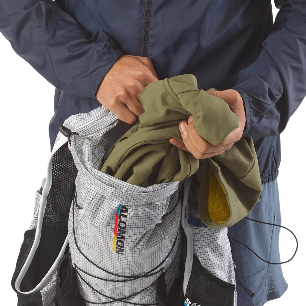 El ADV Skin Cross Season Race Flag, un llamativo homenaje en blanco y negro a nuestros orígenes de competición, aprovecha las ventajas de nuestro chaleco superventas ADV Skin y le añade almacenamiento principal inspirado en una bolsa estanca, bolsillos resistentes al agua y remates más grandes, para una apertura y almacenamiento sencillos en todo tipo de condiciones. Este modelo no incluye las botellas blandas, ni bolsa porta bastones.